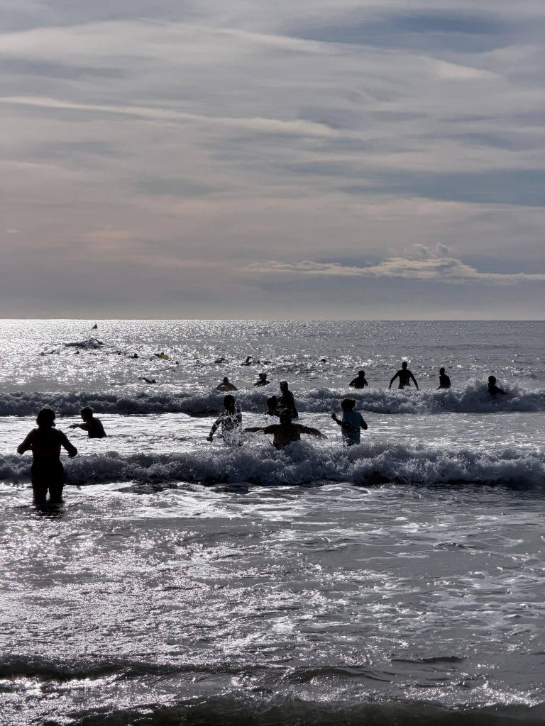 Prop d’un centenar de persones entre inscrits a la Travessia i participants a la banyada s’han reunit aquest matí a la Platja del Morrongo, on es disputava la travessia en un recorregut triangular dins de la zona protegida per l’escollera i de forma simultània la banyada popular solidària amb Avancem Baix Maestrat.